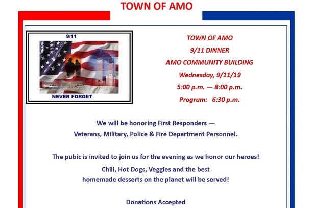 On 9/11 the town of Amo Honored First Responders, Veterans, Military, Police, and Fire Department Personnel with a dinner to say thank you for their service.