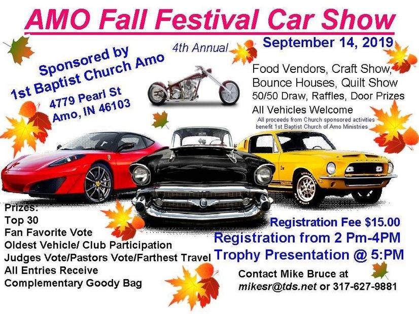 The Town of Amo put on it's annual Fall Festival that inlcuded a car show and lots of food and fun! Special thanks to the Amo Town Council, First Baptist Church of Amo, Amo Reading Room, Amo Pizza and General Store, and the residence of Amo for making this event possible!